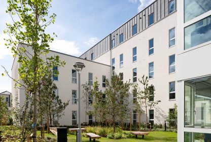 Innovations implemented throughout the development of Charlestown Phase 2B included a precast concrete frame, large pre-finished concrete balconies, along with pre-assembled bathroom pods. These off-site construction methods meant greater efficiencies, increased programme predictability and a faster pace of construction, as construction activities could overlap where work could commence off-site before the site was ready for the finished product.